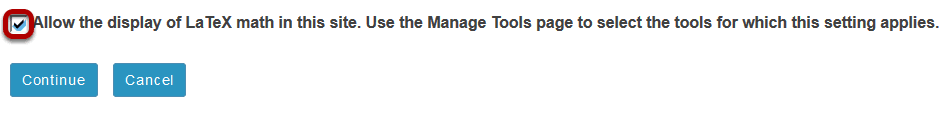 Select "Allow the display of LaTex math in this site." Click Continue.